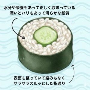 すごく簡単にしていますが、髪の毛1本を輪切りにすると基本的にはかっぱ巻きみたいな構造になっているんです。